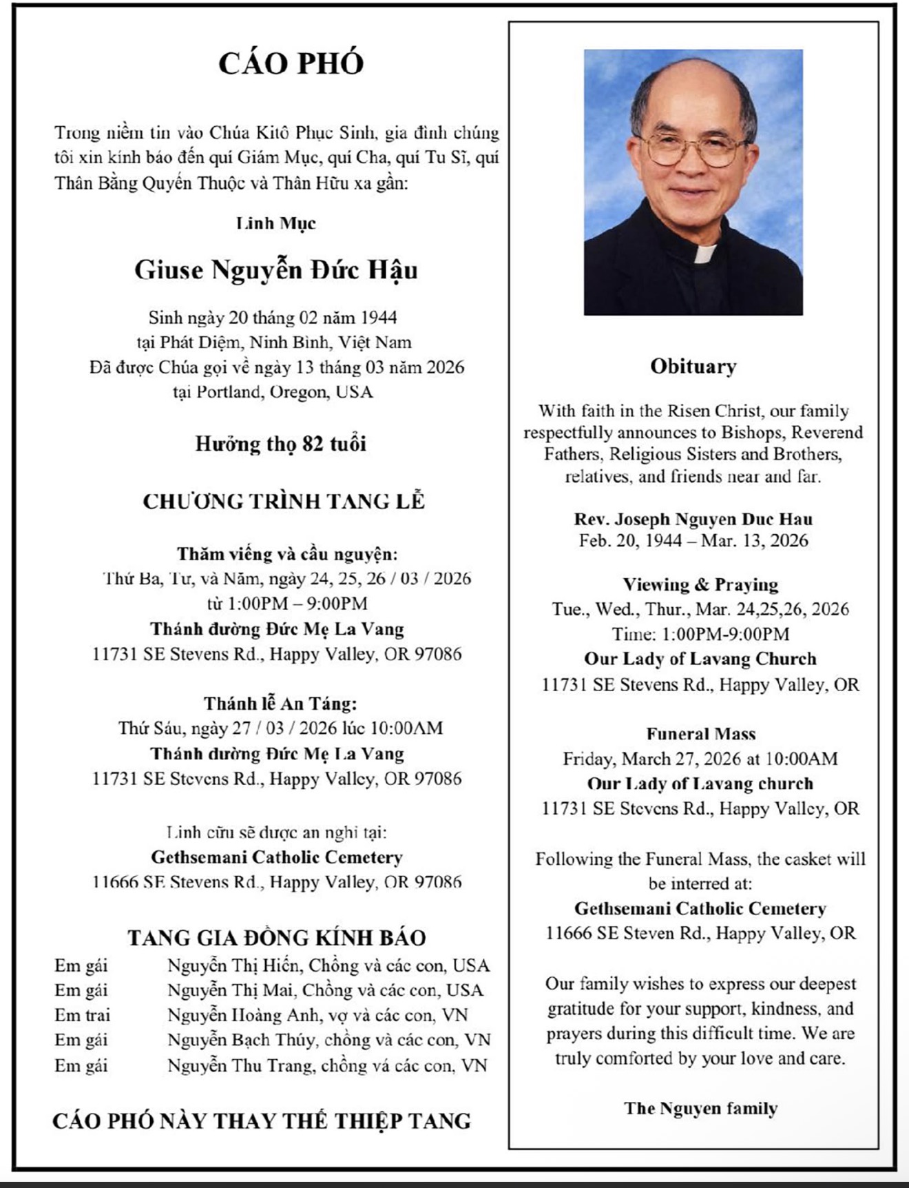 2. Đức Tổng Giám Mục Michael G. McGovern đau buồn khi biết tin một phó tế Công Giáo bị sát hại bởi chính con ruột của mình
