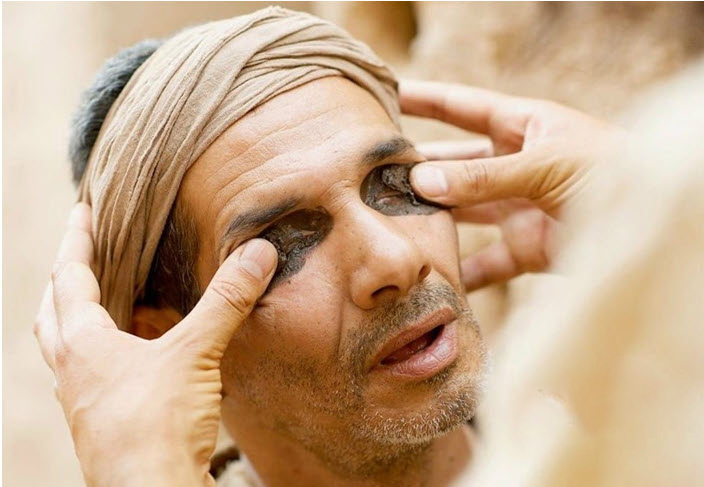 người mù từ thuở mới sinh. Đức Giê-su nhổ nước