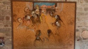 Trên bức tường phía bắc của nhà nguyện là bức tranh thần học, nơi có thể dễ dàng nhận ra tình tiết trong Kinh thánh về Bữa Tiệc Ly. Tuy nhiên, Guitton muốn trình bầy “Bữa tối vượt thời gian”. Chúa Giêsu ở giữa, truyền phép bánh và rượu. Chiếc áo dài màu đỏ tượng trưng cho sự cứu chuộc. Quyền lực này mở rộng đến những người đứng chung sân khấu với Chúa, bắt đầu từ tông đồ Gioan - được miêu tả như một linh mục Do Thái - và Maria Magdalêna, người đã đập bể lọ nước hoa để rưới vào chân Chúa Giêsu.