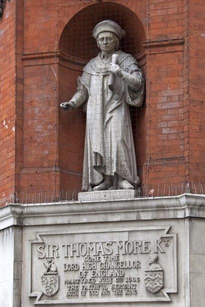 Tượng đài Thánh Thomas More của George Sherrin, 1888 [Cổng More tại Lincoln’s Inn, đường Serle và Carey, London] [ảnh: Wikipedia]