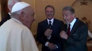 Một đoạn video được Vatican News chia sẻ cho thấy Đức Thánh Cha Phanxicô gặp Stallone và nói với ông: “Chúng tôi lớn lên cùng những bộ phim của ông”. Stallone, đùa giỡn bằng nắm đấm, trả lời: “Sẵn sàng, chúng ta đấu quyền!”