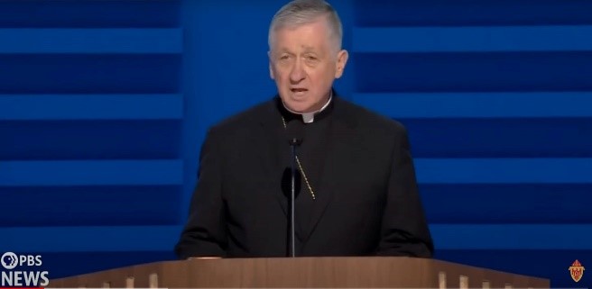 Đức Hồng Y Cupich đọc lời cầu nguyện tại DNC 2024. Tín dụng: PBS News / Ảnh chụp màn hình.
