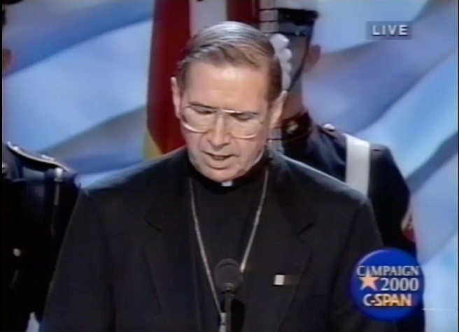 Đức Hồng Y Mahony đọc lời cầu nguyện tại DNC năm 2000. Nguồn: CSPAN, Ảnh chụp màn hình