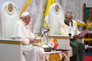 Một sự kiện đáng khen ngợi khác đã diễn ra khi, vào dịp kỷ niệm 20 năm độc lập của đất nước, ngài đã đưa Tuyên bố về tình anh em nhân loại thành một văn kiện quốc gia, và tôi rất biết ơn về điều này, thưa Tổng thống. Tôi đã ký Tuyên bố đó cùng với Đại Imam của Al-Azhar vào ngày 4 tháng 2 năm 2019 tại Abu Dhabi. Ngài đã làm điều này để - như chính Tuyên bố kêu gọi - nó có thể được thông qua và đưa vào chương trình giảng dạy của trường học. Thật vậy, đây là điều cơ bản.