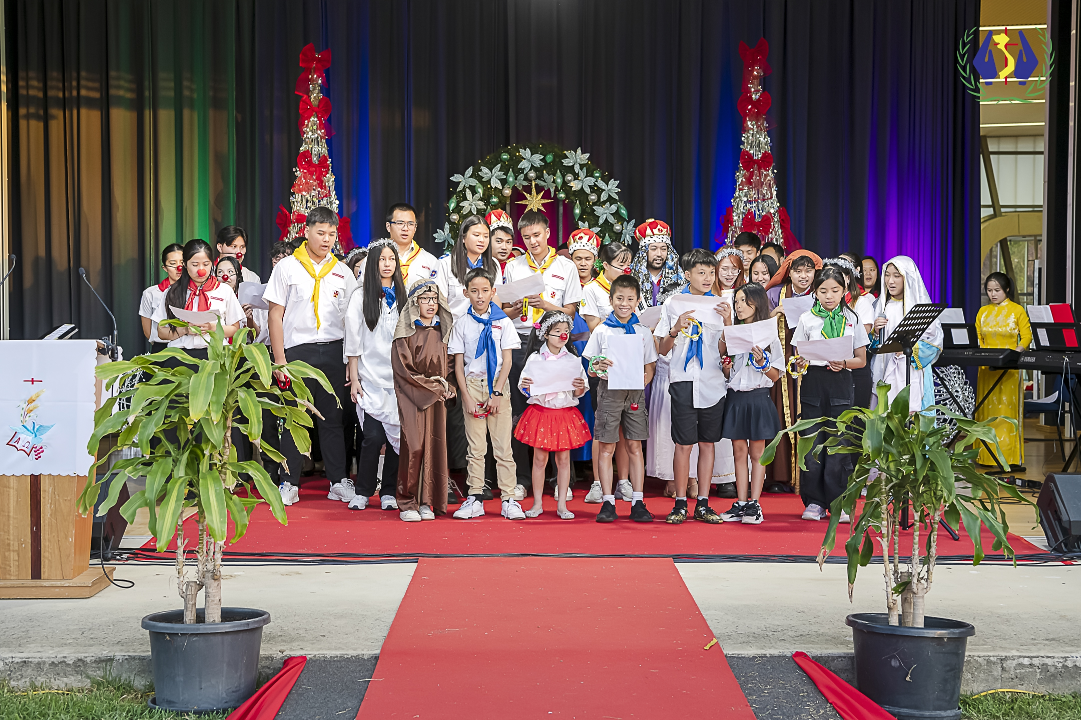 Đại Lễ Giáng Sinh bắt đầu với tiếng kèn của ban tây nhạc Cecilia tình tấu nhạc phẩm “Cao Cung Lên.” Sau đó, hoạt cảnh vọng Giáng Sinh do Liên Đoàn Thiếu Nhi Thánh Thể diễn nguyện. Đêm Giáng Sinh, hay còn gọi là Đêm Thánh, diễn ra vào đêm 24 tháng 12, đánh dấu thời khắc Chúa Giêsu giáng sinh tại hang Bêlem. Theo truyền thuyết Kinh Thánh, sự ra đời của Chúa mang ý nghĩa cứu rỗi, mang lại hy vọng và ánh sáng cho nhân loại.
