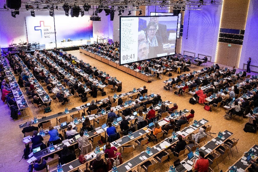 * Trên thực tế, hai trung tâm quyền lực và văn phòng giảng dạy ra đời, cùng tồn tại trong tranh chấp: trung tâm Công Giáo Rôma (bị buộc bước vào thế hiện hữu thiểu số), và văn phòng tín lý và lãnh đạo rất rõ ràng của Con đường Đồng nghị, một văn phòng, đàng khác, còn được thúc đẩy bởi các phương tiện truyền thông thế tục và truyền thông giáo hội. Do đó, “pax christiana” [hoà bình Kitô giáo] ở Đức đã kết thúc, vì không một người nào và không một tổ chức giáo hội nào có thể phục vụ hai chủ.
